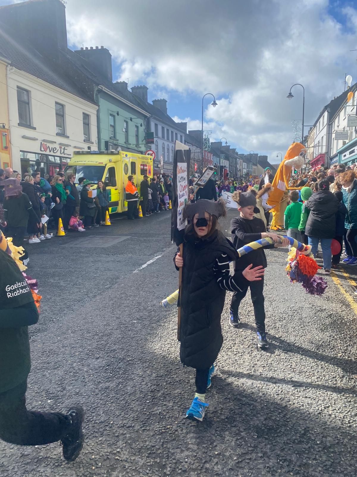 We love to do drama in our Irish lessons in fifth class. It helps us to absorb the new phrases… and it’s fun, too.